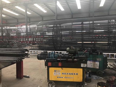 - 鐓粗直螺紋套筒連接是利用鐓粗機先將鋼筋端部鐓粗,然后再利用專(zhuān)用機床對鐓粗段進(jìn)行套絲,通過(guò)鋼筋端頭特制的直螺紋和直螺紋套筒咬合形成整體的一種連接方式。