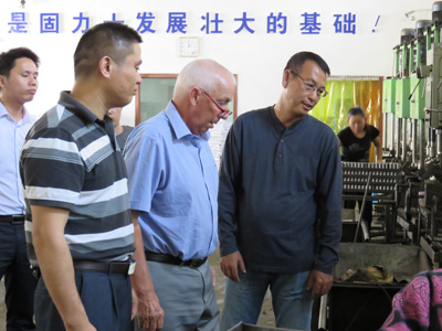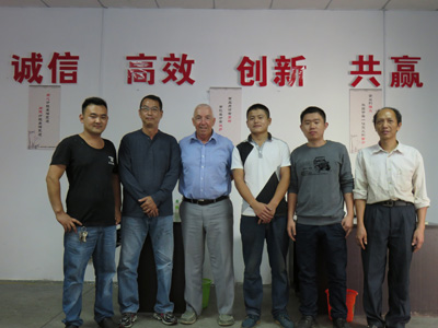 我們首先陪同凱文一行參觀(guān)了我們的新工廠(chǎng)。該工廠(chǎng)采用了全新套筒加工工藝。保證套筒絲牙精度達到6H級。套筒內徑、外徑、長(cháng)度等指標也全部達到國家最新JG/T163-2013鋼筋連接套筒標準。是廣東省內少數幾家能達到此標準的生產(chǎn)企業(yè)。其間,凱文和黎生拿起我們生產(chǎn)的直螺紋套筒,不時(shí)點(diǎn)點(diǎn)頭。用英語(yǔ)交流了起來(lái)。凱文是英國最早從事鋼筋套筒行業(yè)的少數人之一。其在英國推廣的鋼筋籠技術(shù)一直使用至今。到今天入行年限已超過(guò)40年。真可謂一生只做一件事的典范。其行事風(fēng)格極其嚴謹,是最典型的英國技術(shù)人才。嚴謹、負責是其身上最突出的特點(diǎn)。而黎生作為我們較早合作的外商之一,精通四種語(yǔ)言,以其鮮明的國際化令我們十分欽佩。